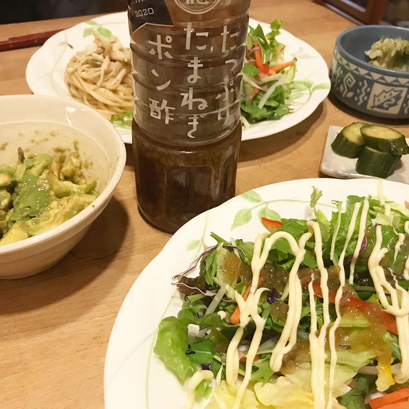生野菜には我が家でブームの「たっぷりたまねぎポン酢」を。美味しい!鍋のポン酢では美味しく無いけどドレッシングとして使うとすごい!