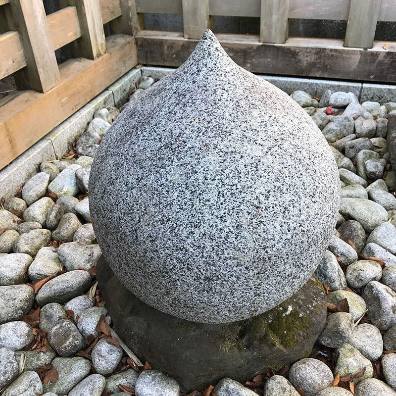ここに来たら必ず見る涙のような雫のような形に彫られた白御影石