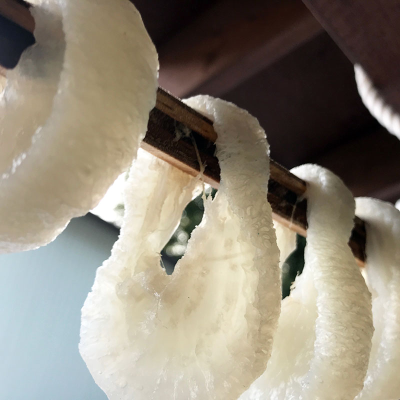 日中、陽のあたる玄関に移動したへそ大根。
