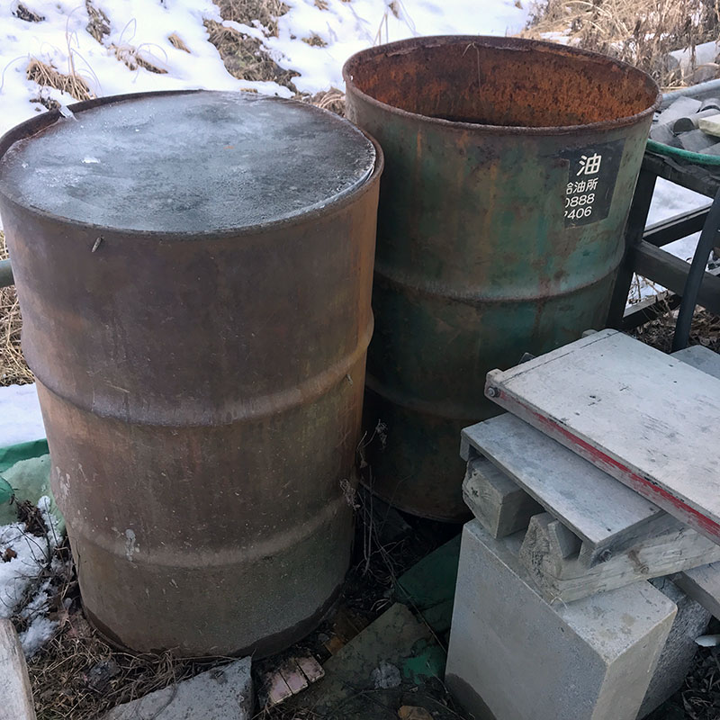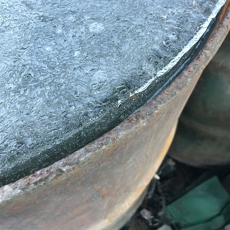 今年はドラム缶で溜めてる雨水もハンパない凍り方。
