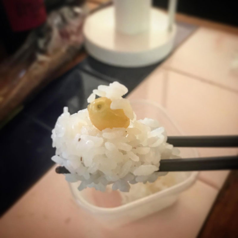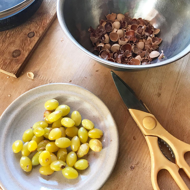 三田さんにいただいたぷっくりした銀杏を煎って、