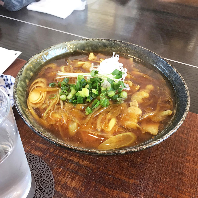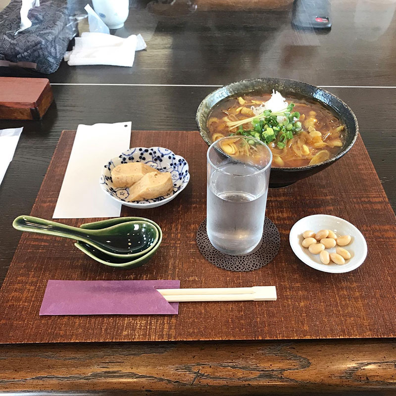 カレー南蛮そば。極細の手打ち蕎麦をカレー餡でいただくというちょっと勿体無い様なランチ。