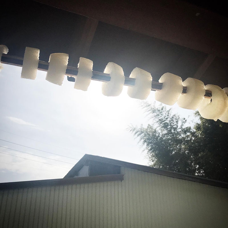 寒くてずっと凍っていたへそ大根、やっとほんの少し溶けた。溶けると凍るを繰り返さないと乾物にならない。