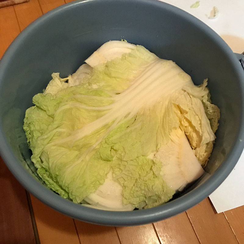 前回漬けたのが3つ残ってるから食べ終わる頃には今回仕込んだ白菜が食べ始められるだろう。