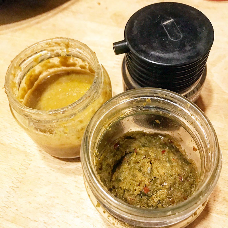 自家製のゆずぽんと柚子胡椒。ひろみさんが作った黄柚子で作ってくれた柚子胡椒も。