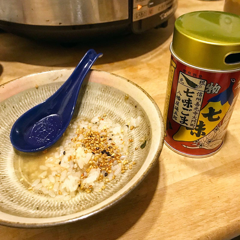〆に銀杏御飯に出汁をかけて七味ごま。温まったー!
