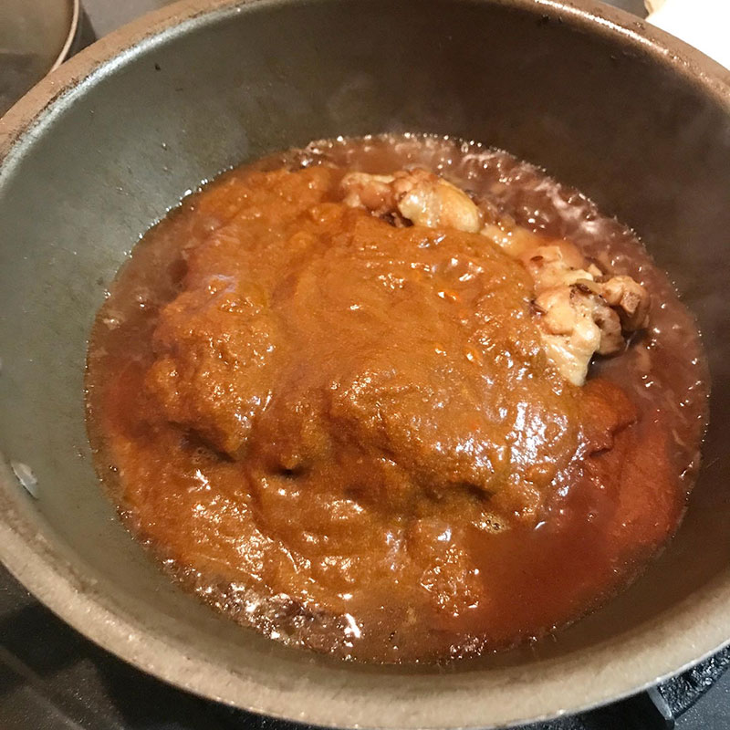 いつもなら更にスパイスを追加し生トマトかトマト缶を入れるタイミングでキットのルーを入れる。