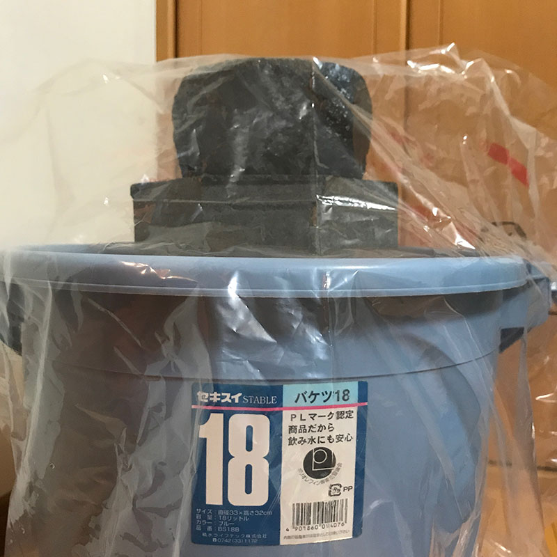 3段重ねた重石がちょうど樽の縁と同じ高さまで沈んだ。