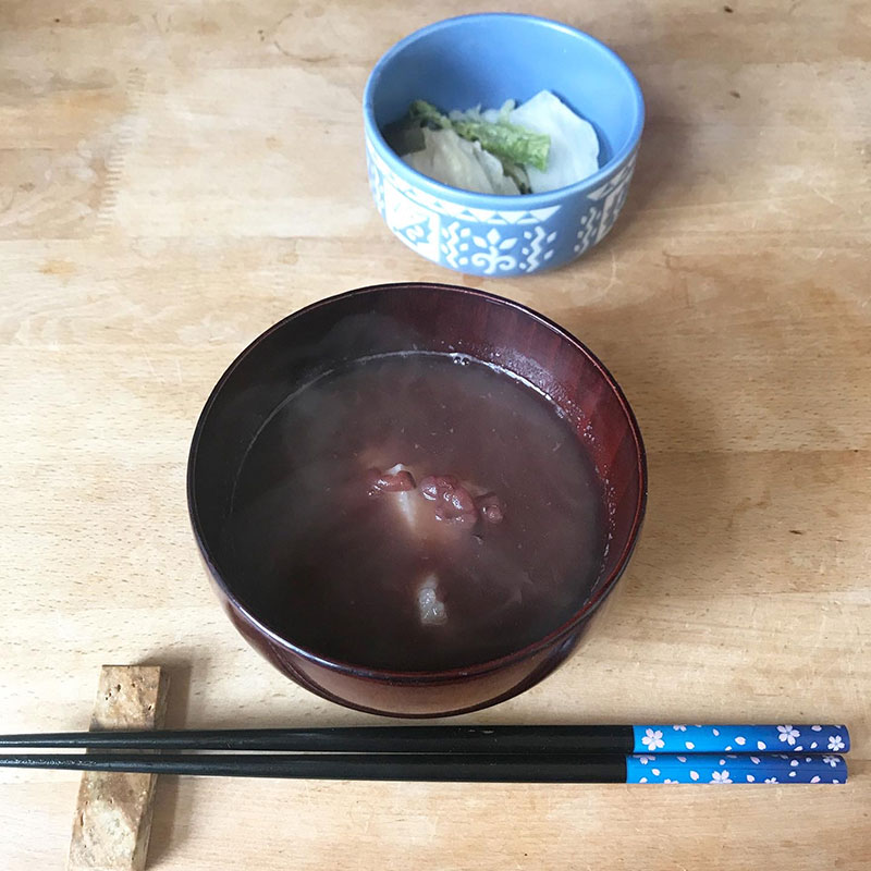 一日遅れの鏡開き。カミさんが鏡餅をおしるこにしてくれた。