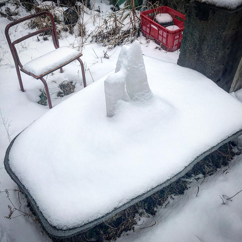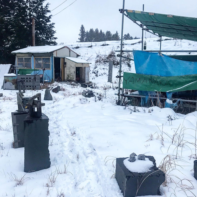 そして午後、石彫り。雪の量はそれほどでも無く問題無く入れた。さらっと雪かき。