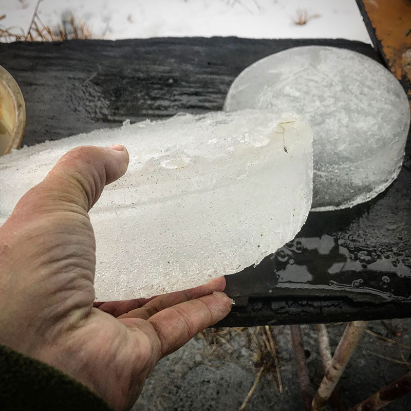石彫り前にちょっと氷のオブジェでも作ろうかと思ったんだけどこの厚さだもん。