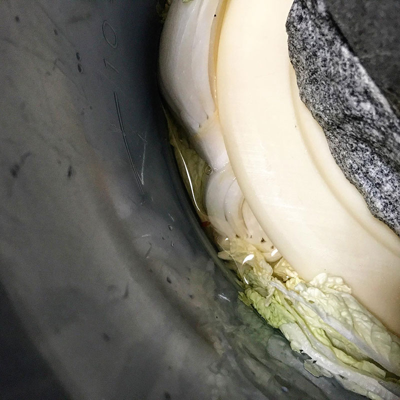 仕込んで丸2日48時間で白菜の高さと同じところまで水が上がった。