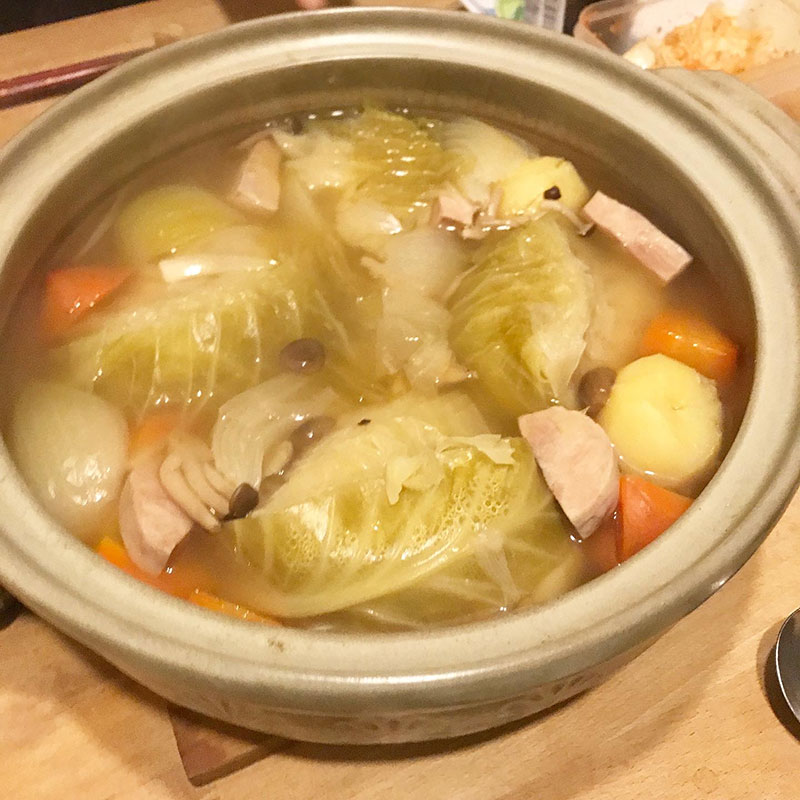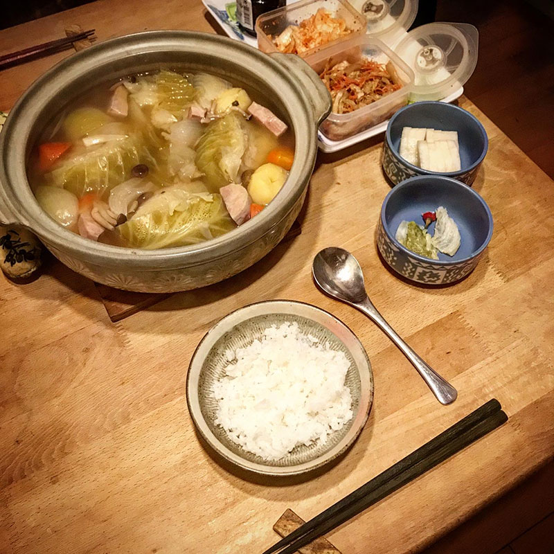 手作りのハムをいただいてカミさんが土鍋でポトフ作ってくれた。