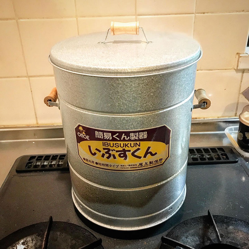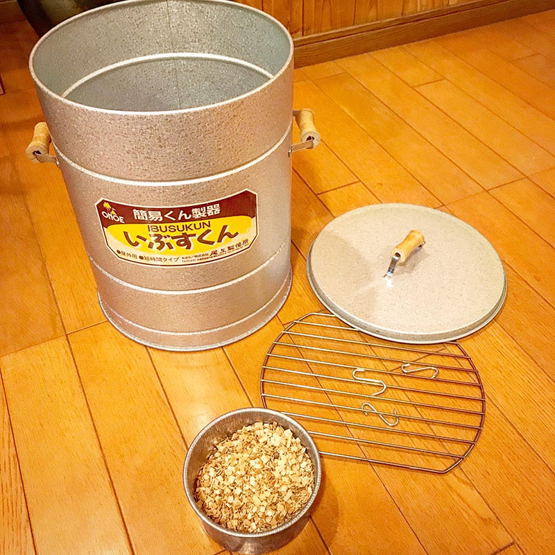 絶賛、断捨離中の我が家の棚の奥からいつか使おうと思っていた簡易燻製器”いぶすくん”を出してきた。