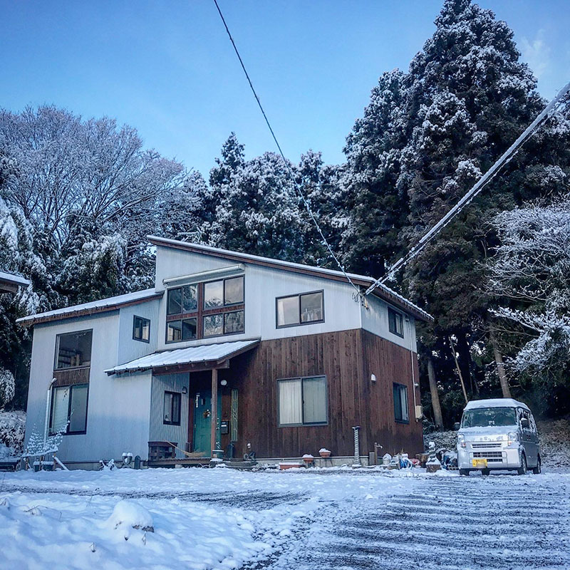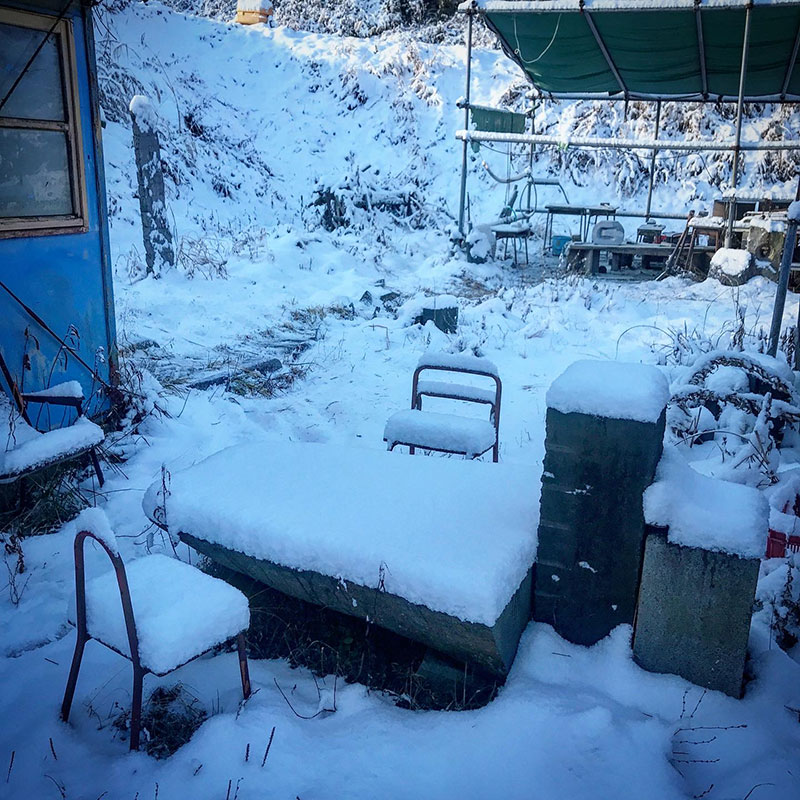 背後の山の影になって冬の午後は全く日の当たらない仕事場。