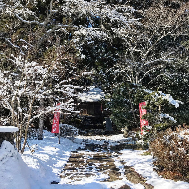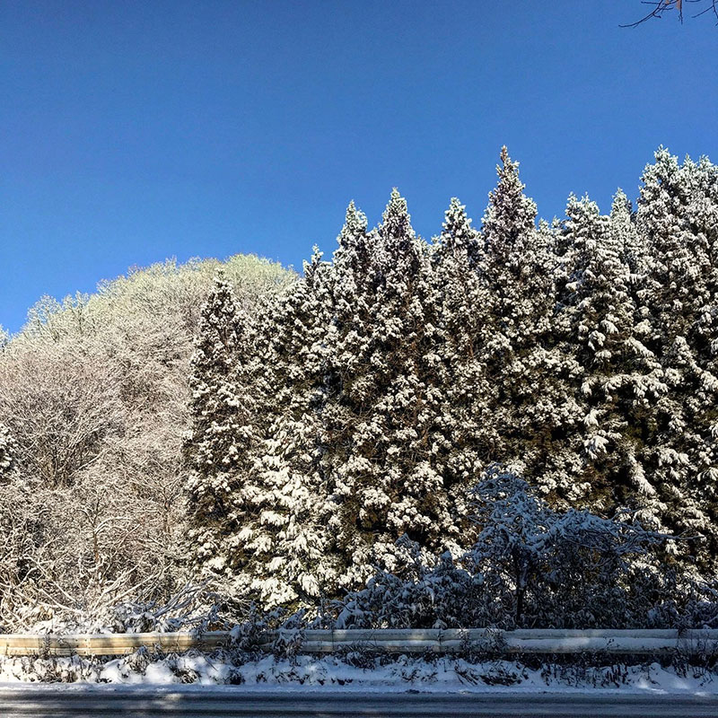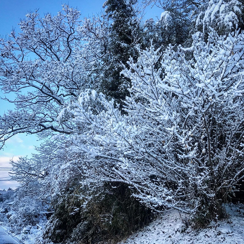 雪だ。キッチンの窓から外を見ると雪でしなった竹が迫ってる。