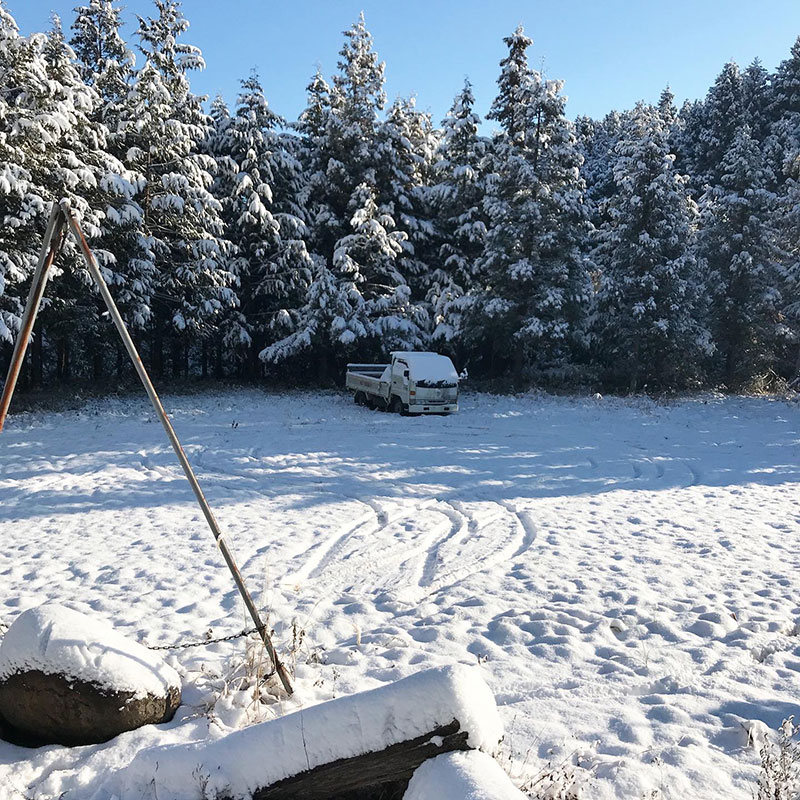 雪は積もってるけど空は抜けるように青く太陽が燦々と輝いて風もなく午前中は最高の制作日和だった。