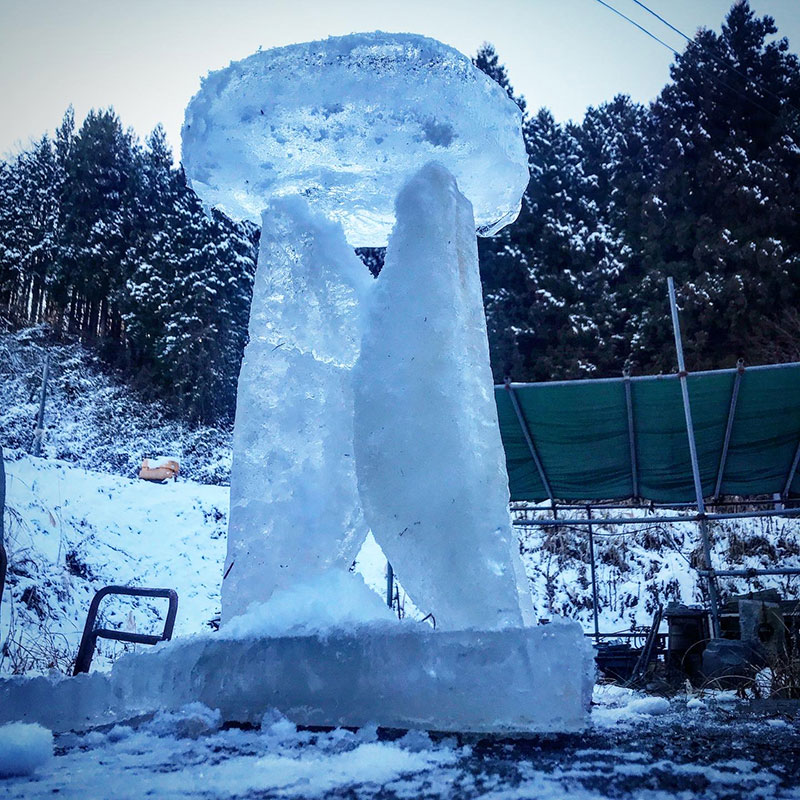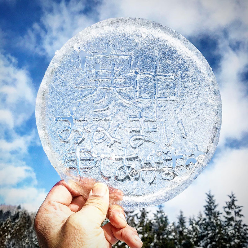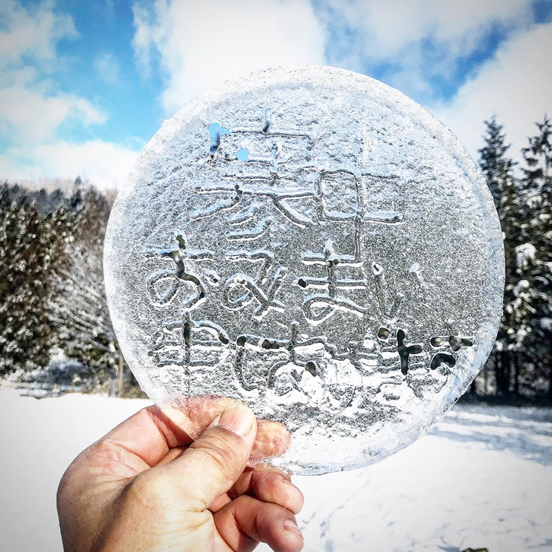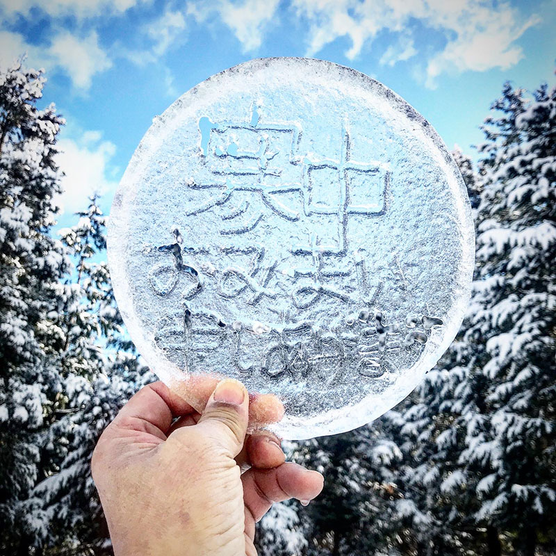 画数が多くて氷に彫りきれなかったのでひらがな多用で