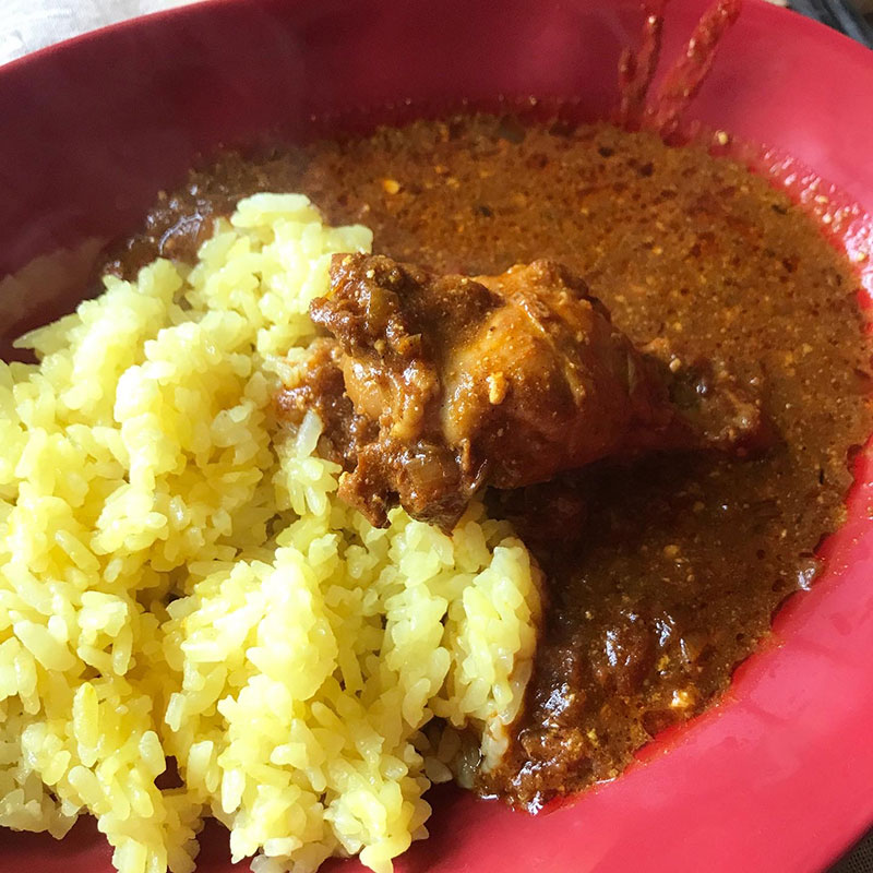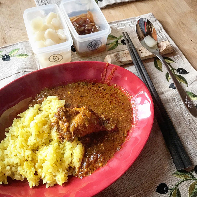 昨日作ったスパイスカレーの昼飯。