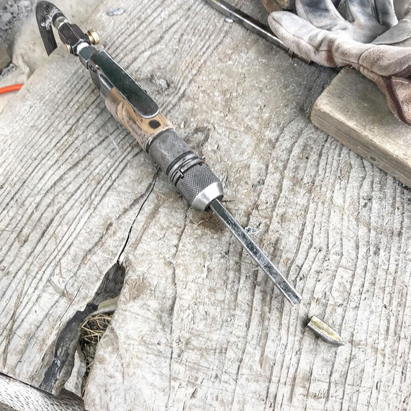 特注の長いノミがまた折れました。普通にノミを使えない普通じゃない形を彫っているので。