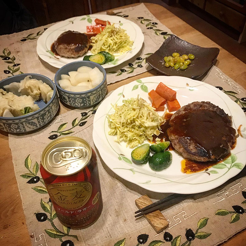 カミさんがハンバーグ作ってくれた。