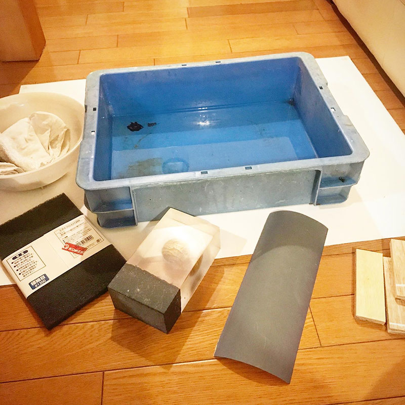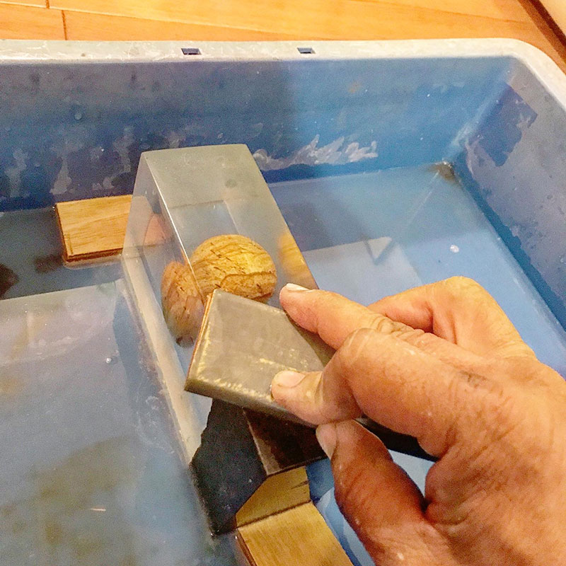 透明樹脂を作品として成立するレベルまで透明にするには耐水ペーパーや磨きクロスで何日も何日もかかる。