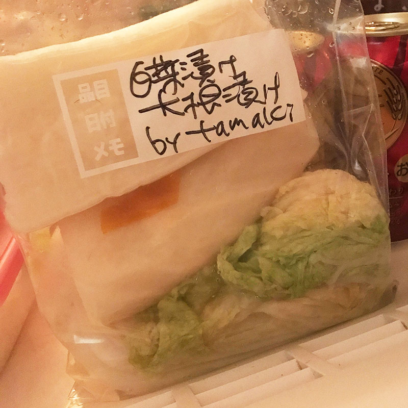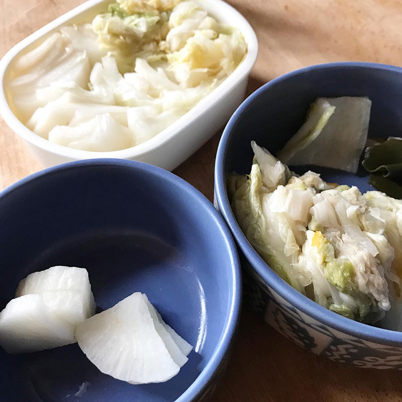 友達に大根漬けと白菜漬けあげる。