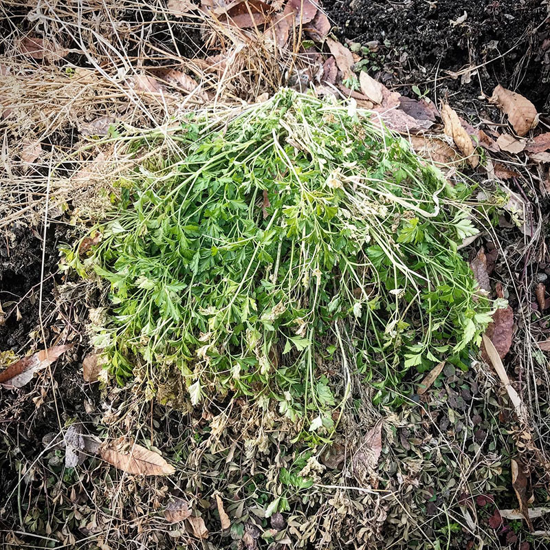 イタリアンパセリもしおれているけど全然食べられる。鉢に移して家の中でも育ててるけど。