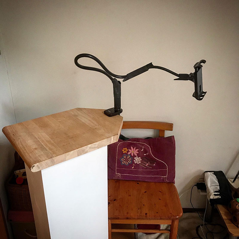 カミさんが主宰してる音楽教室のレッスンの録画やオンラインレッスンで使うiPadスタンド用のテーブル作った。