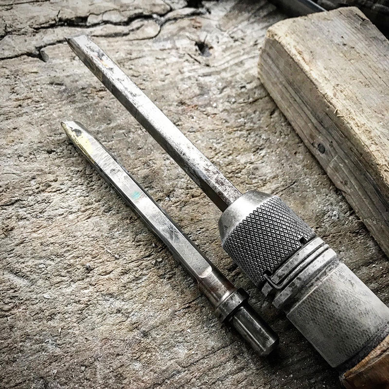 いよいよ特注の長いノミを使う。
