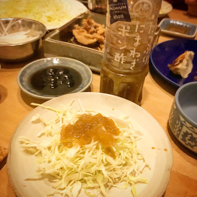 ャベツの千切りにはスーパーで普通に買える、たっぷりたまねぎポン酢かけると最高!