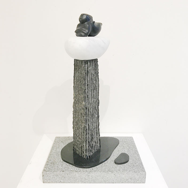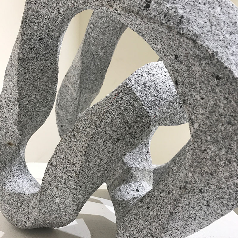 「雨雲の天使」実はこの作品、石彫りを初めてすぐの頃作ったので30年近く前の作品。これまで発表の機会があまりなかったので空の写真と共に展示したんだけど、人気で意外。僕の石彫=抽象って決まってしまってて意外なのかな。具象も作ろうかと思わされるくらいみんなに良いって言っていただいてる。