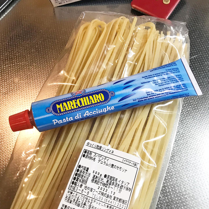 幼なじみがくれたイタリアのリングイネでキャベツとアンチョビのパスタ作ろう。キャベツは麺の様に切ってパスタと一緒に巻いて食べられるように。麺の茹で上がり2分前に投入して。