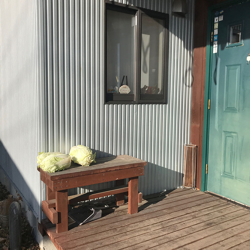 玄関のベンチに白菜が置いてあった。