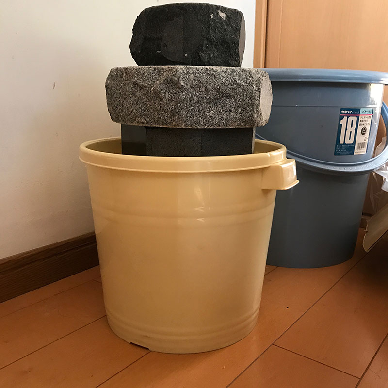 準備してる間、乾いて粉々になってしまうので準備する間、お湯に浸けて戻しておく。