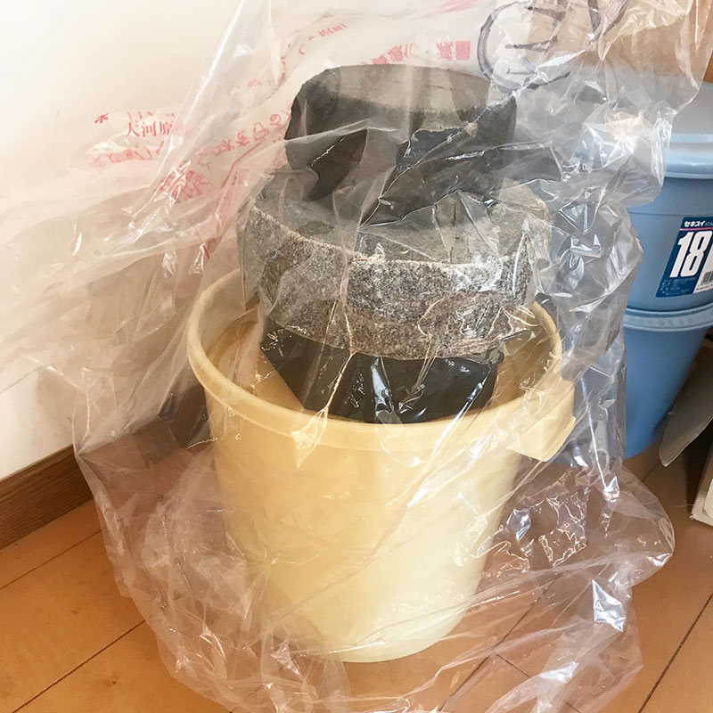 蓋が出来ないのでビニールでゴミやほこりが入らないようにして