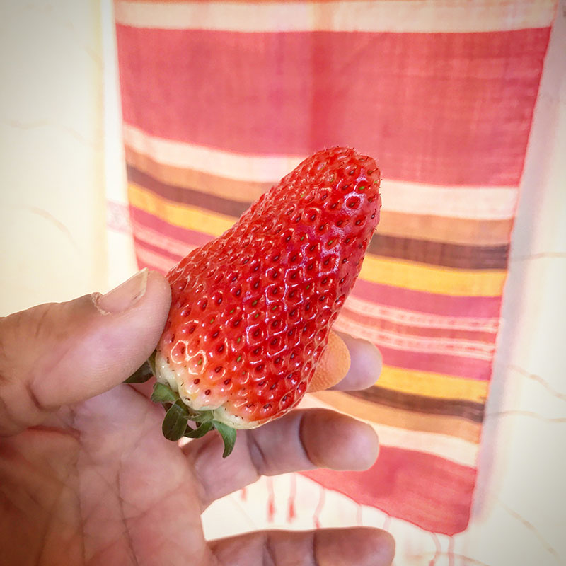 個展の搬入展示に出かける前に赤い宝石食べていく。