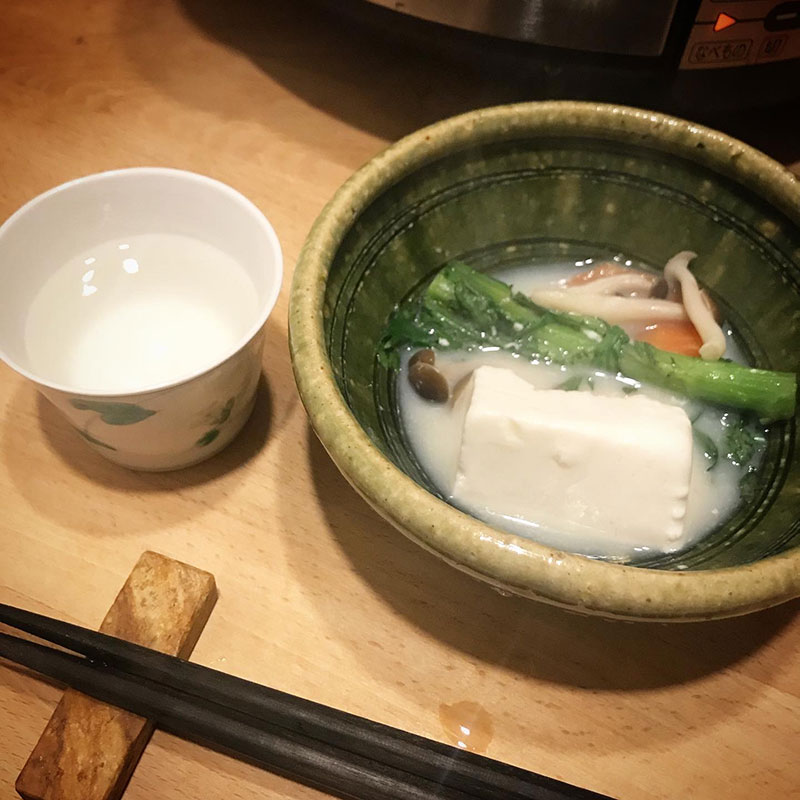 当たり前だけど豆乳つゆに同じ大豆から作ってる豆腐が合う事!