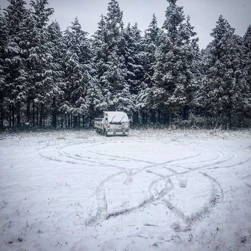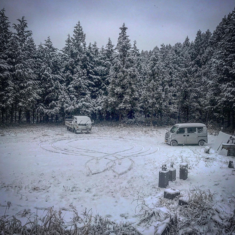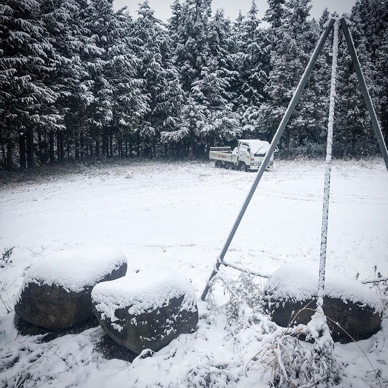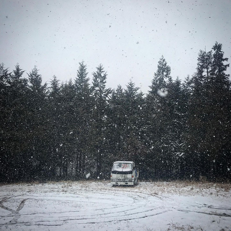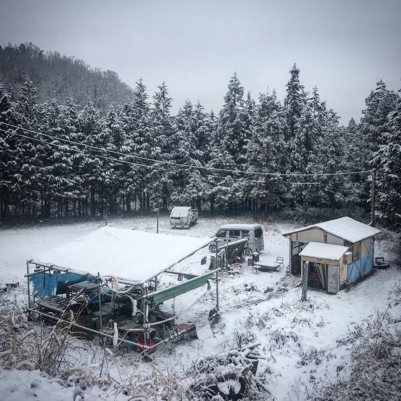 仕事場に戻ったら雪、ガンガン降ってきた。
