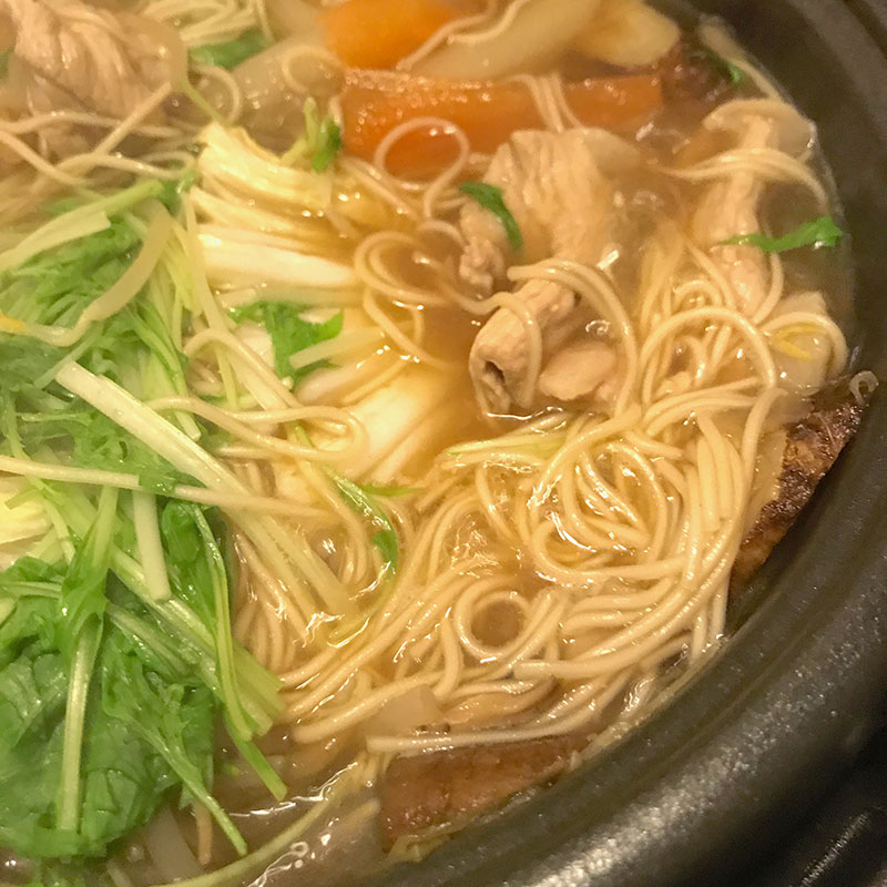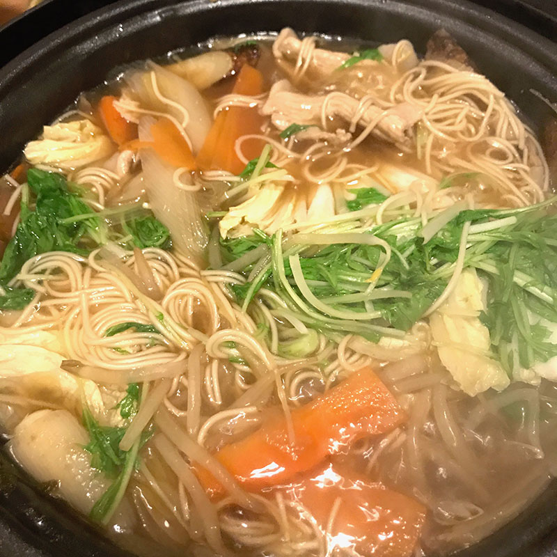 昨晩の鍋の残りに白石温麺入れて夕食。3分茹でるところを2分茹でて水で洗ってしっかりぬめりとってから投入。