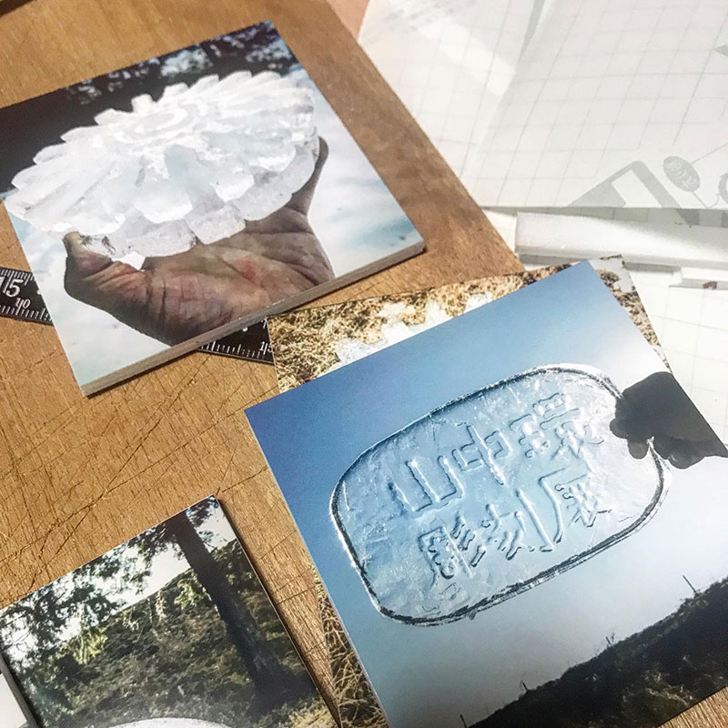 壁面に仕事場で作った氷の彫刻の写真も展示する計画です(笑)