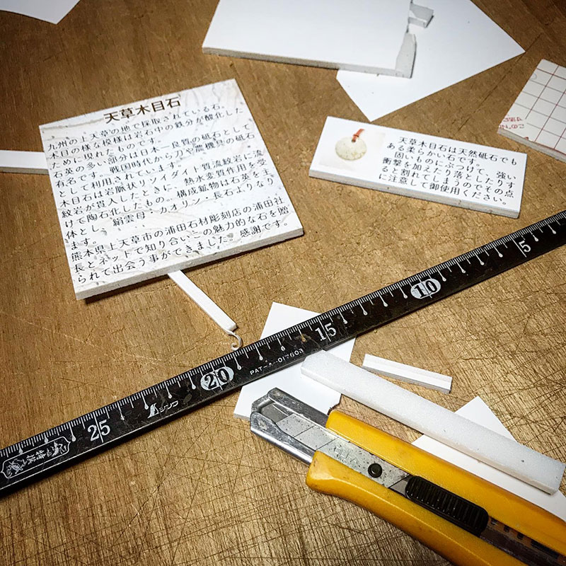 天草木目石の説明プレートや