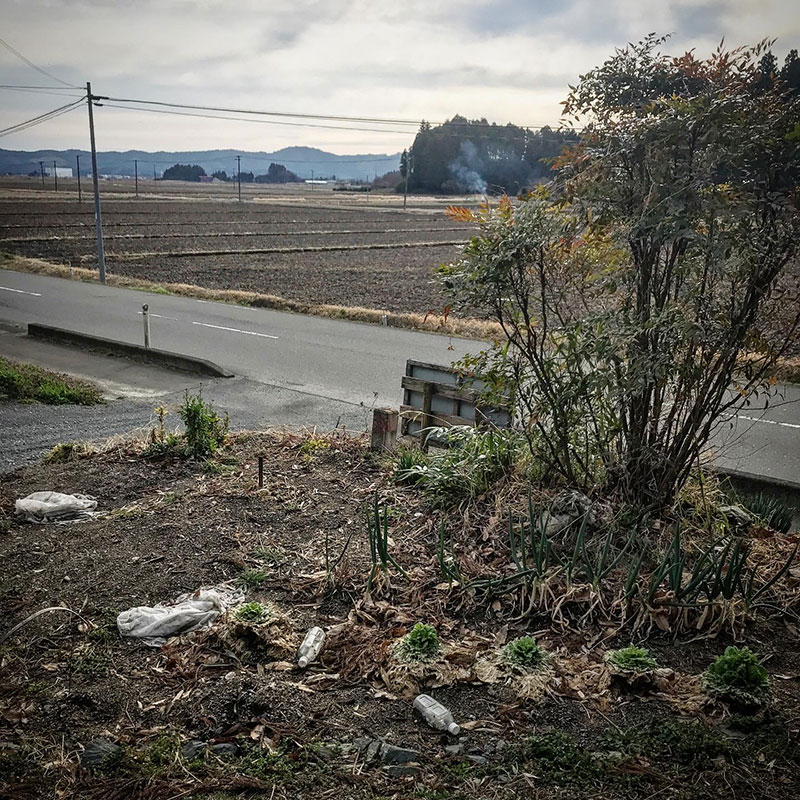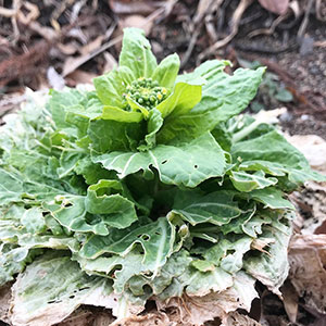 鳥たちの冬の間の貴重な食料として畑に残しておいた結球しなかった白菜。