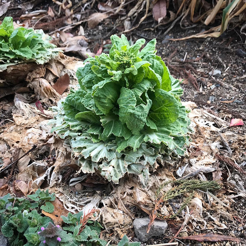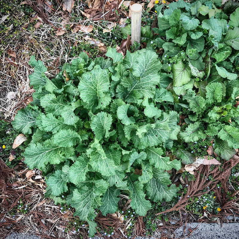 からし菜もいっぱい。元気に冬を越した。早く花を咲かせておくれ。自家製粒マスタード作りたい!
