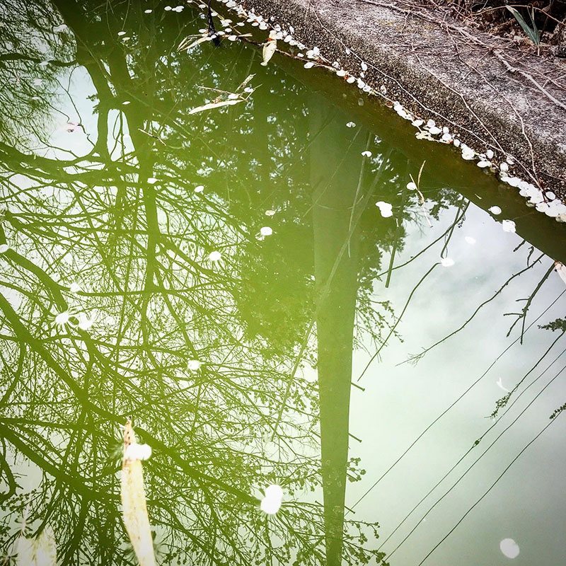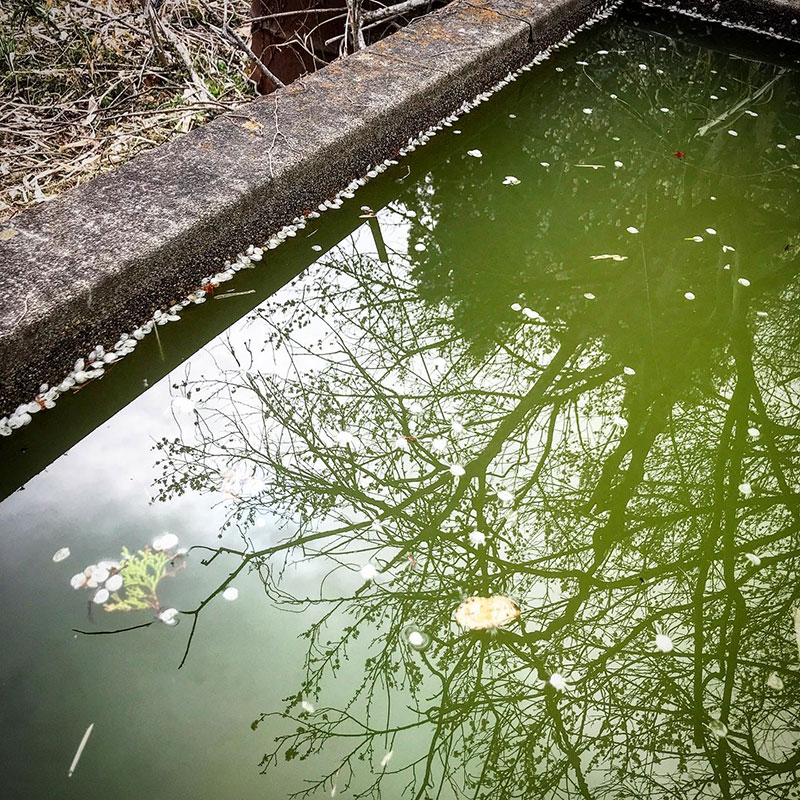 水溜に梅の花びら。