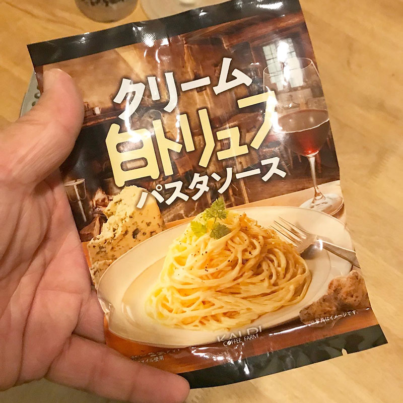 居酒屋我家、開店。ソースは一人前100gのパスタに一袋かける、とあるけど僕らはパスタ食べる時一人70gで食べてるし市販のソースは僕らには味が濃すぎるので2人で140gのパスタにソース一袋。それでも僕らには塩っぱい。でも美味しかった。