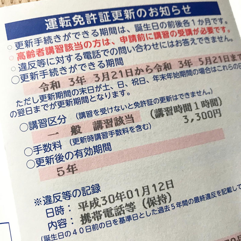 無事更新。次は5年後か。なんかすごく遠く感じるな。次の次の次の更新は自分が高齢者ドライバーになるのか。。。