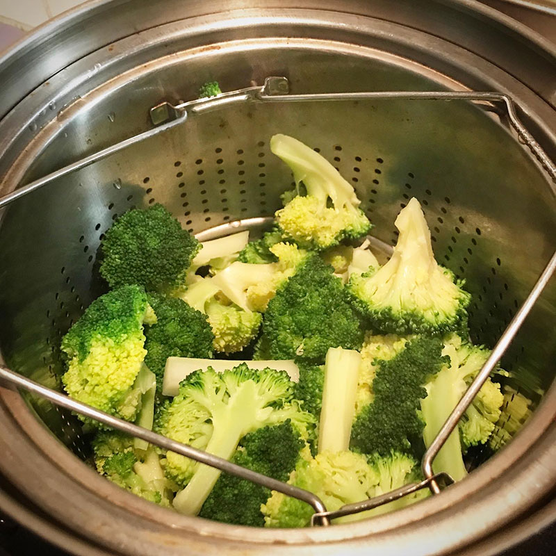 それと蒸しブロッコリー。ブロッコリーは蒸すことが多い。