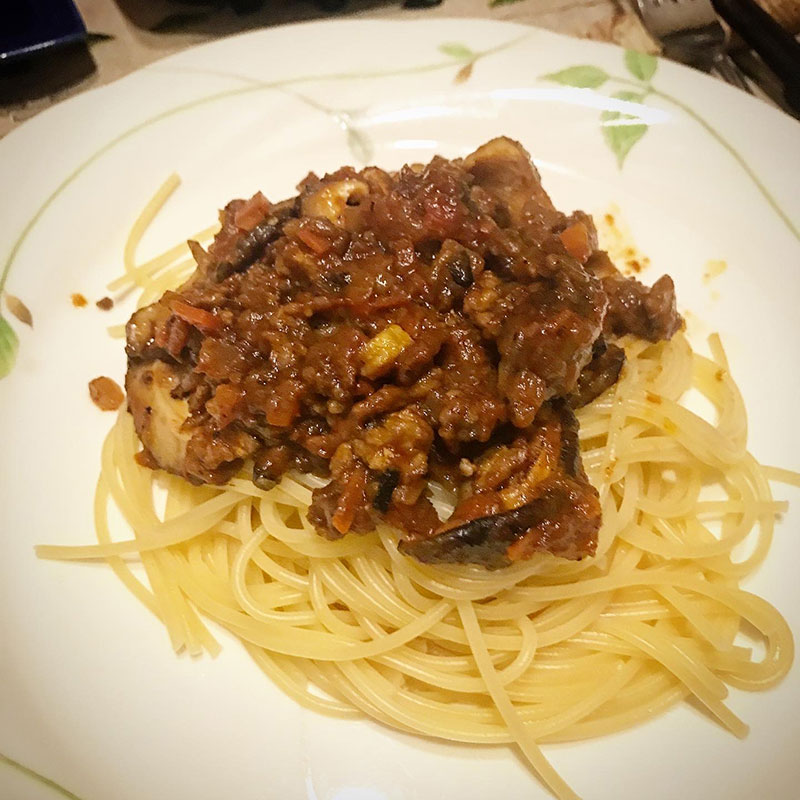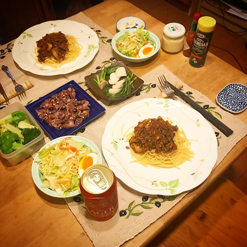 居酒屋我家、開店。冷凍庫で塾生させておいたボロネーゼ。
