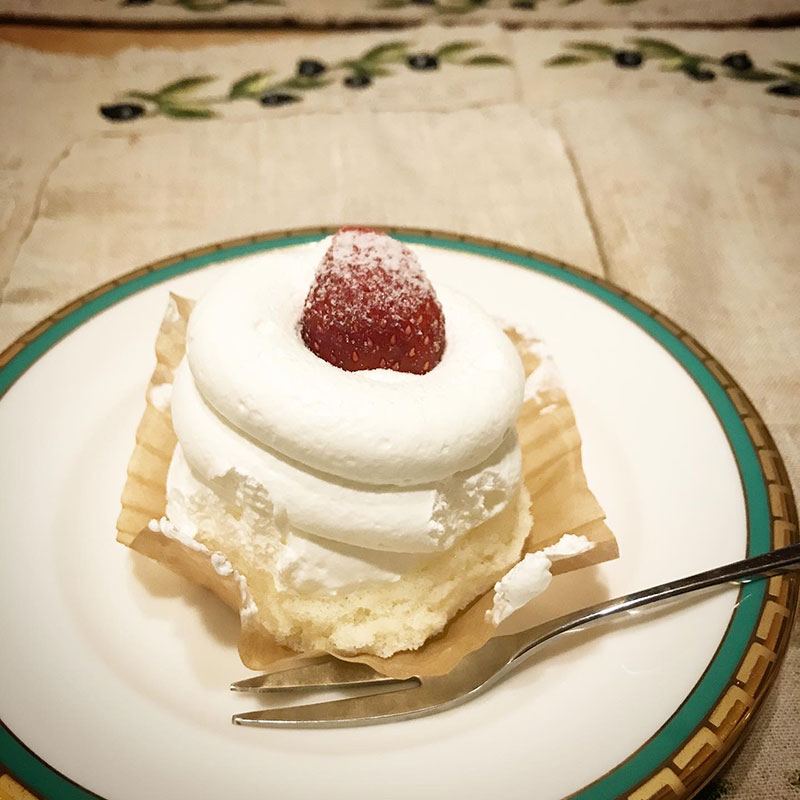 食後のデザートは慌ててコンビニで買ってきた苺ショート。